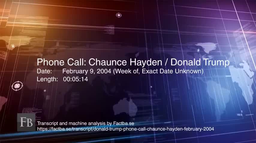 Interview: Phone Call Between Chaunce Hayden and Donald Trump - February 1, 2004