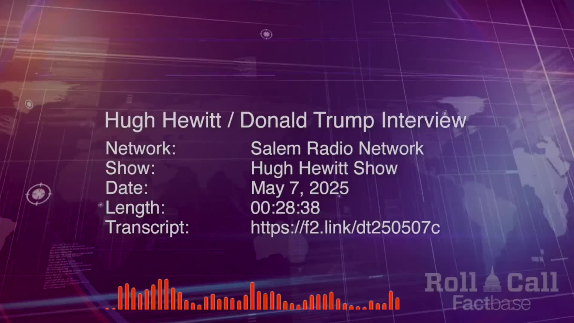 Interview: Hugh Hewitt Interviews Donald Trump on His Radio and Podcast Show - May 7, 2025