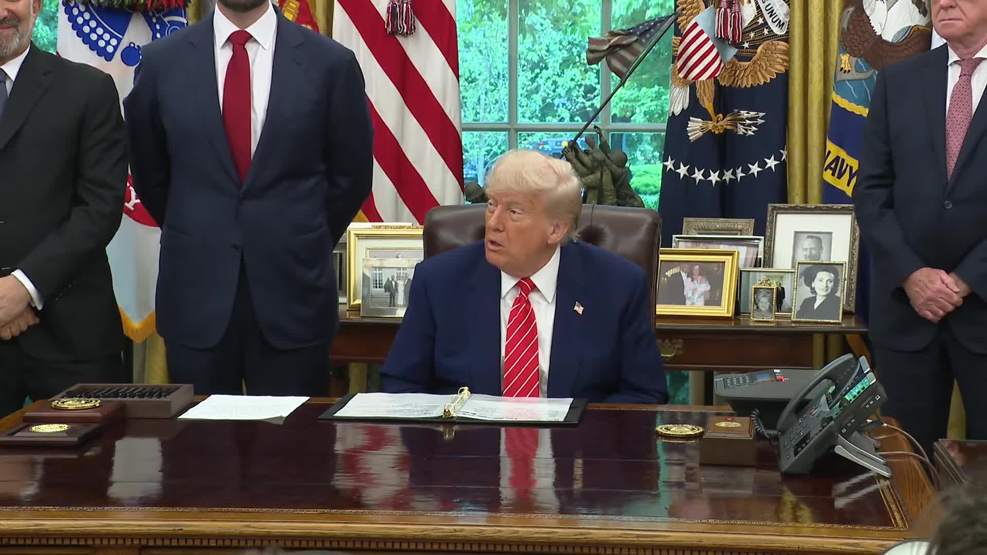 Donald Trump: Well, thank you very much everyone. Thank you. It's a great honor. We just made a very big deal with the UK, the United Kingdom on trade, which is shocking everybody. They said, oh, gee. And we just had the Ukraine -- we just were notif…